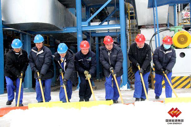 圖為煤制油煤液化生產(chǎn)中心員工在頂峰除雪保安全。