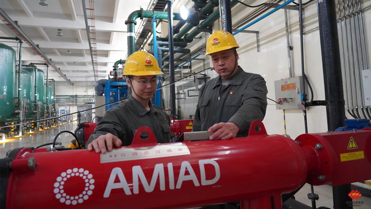 圖為該廠發(fā)電部人員正在對(duì)除鹽水預(yù)處理系統(tǒng)網(wǎng)式過(guò)濾器進(jìn)行檢查。