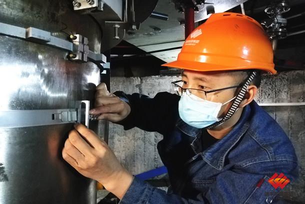 圖為該公司青年員工認真檢查水力發(fā)電機組齒盤測速裝置并進行消缺