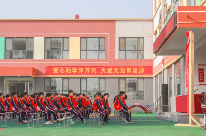 上午十點,小學(xué)部的學(xué)生們都佩戴好了紅領(lǐng)巾,整齊地坐在操場上參加國家能源集團愛心學(xué)校的揭牌儀式。這座由國家能源集團全資援建的愛心學(xué)校莊嚴地屹立在這片“新中國從這里走來”的土地上。