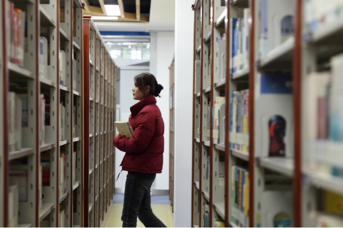 圖為曼古麗·牙生在圖書(shū)館搜集資料