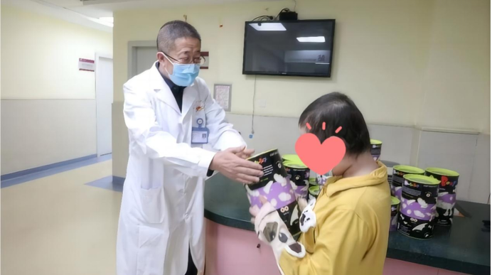 醫(yī)生給即將出院的小葳葳贈送禮物