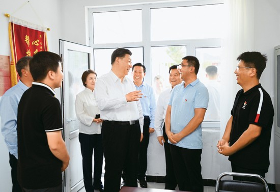 2019年7月15日至16日,中共中央總書記、國家主席、中央軍委主席習(xí)近平在內(nèi)蒙古考察并指導(dǎo)開展“不忘初心、牢記使命”主題教育。這是15日下午,習(xí)近平在赤峰市喀喇沁旗河南街道馬鞍山村黨群服務(wù)中心了解基層黨建、民族團(tuán)結(jié)和鄉(xiāng)村振興情況。 新華社記者 謝環(huán)馳/攝