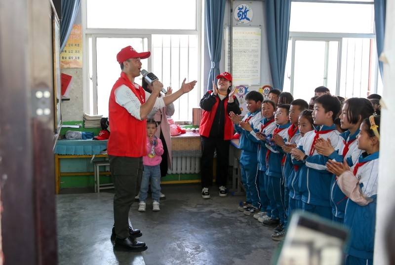 圖為寧夏煤業(yè)員工在朝陽小學(xué)舉辦志愿服務(wù)活動(dòng)