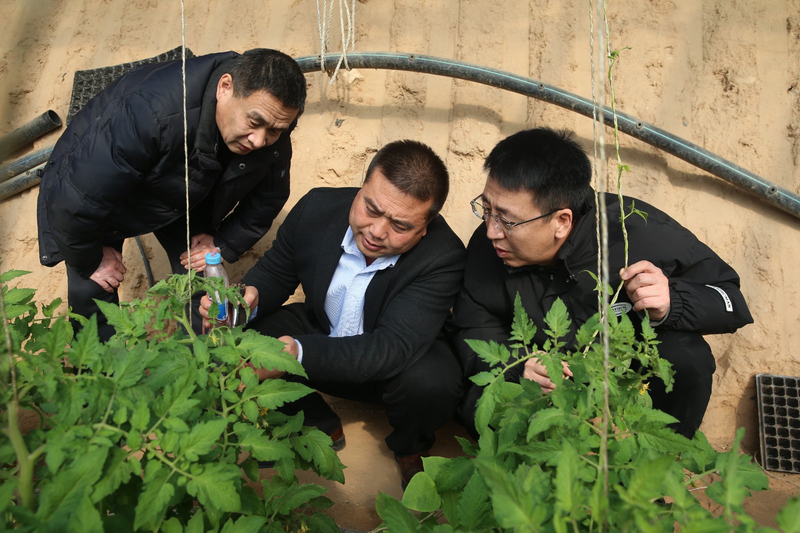 圖為寧煤駐村工作隊(duì)在日光大棚了解作物種植情況