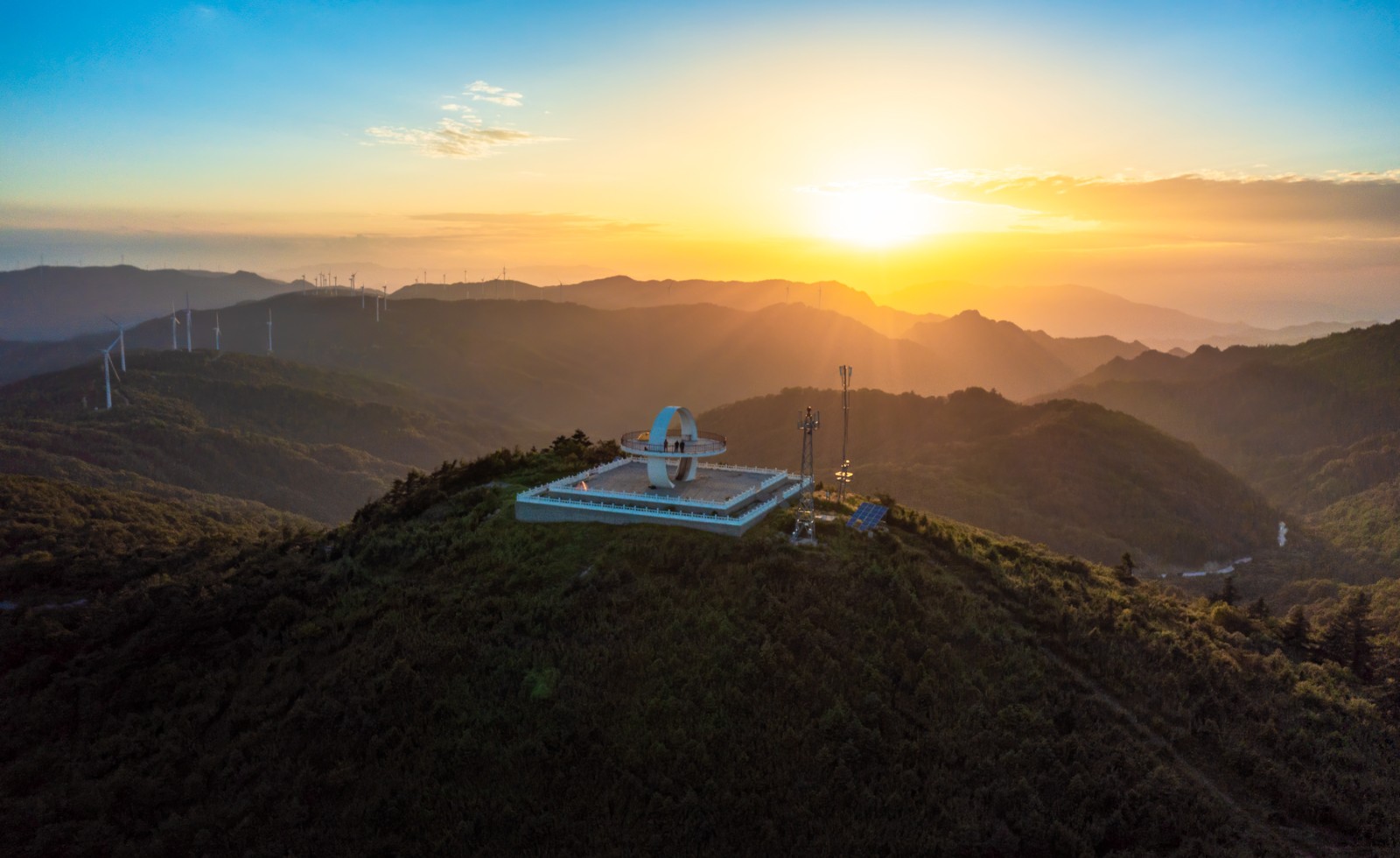 在連綿起伏的秦嶺山脈之間,一排排潔白高大的風(fēng)力發(fā)電機(jī)組錯落有致地矗立著,葉片迎著山風(fēng)悠悠轉(zhuǎn)動,源源不斷地將風(fēng)能轉(zhuǎn)化為清潔電能,為人們的生活帶來光明和溫暖。這里是國家能源集團(tuán)龍源電力在陜西省建成投產(chǎn)的第一座風(fēng)電場——觀日臺風(fēng)電場,也是陜南區(qū)域第一座風(fēng)電場。多年來,風(fēng)電場職工們不僅為綠色電力拼搏奮戰(zhàn),同時也在為建設(shè)美麗生態(tài)而不懈努力。
