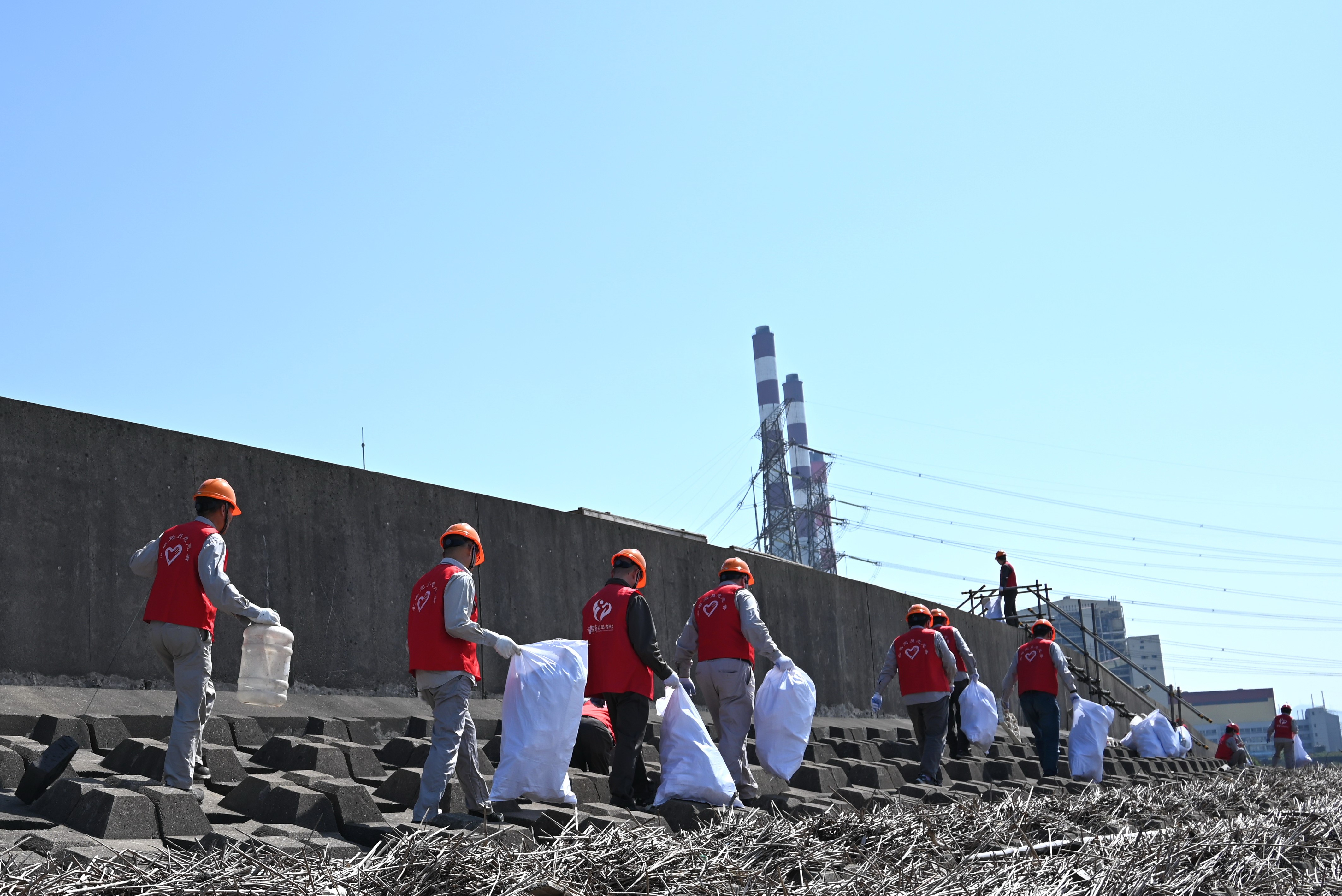 圖為浙江公司北侖電廠志愿者撿拾垃圾