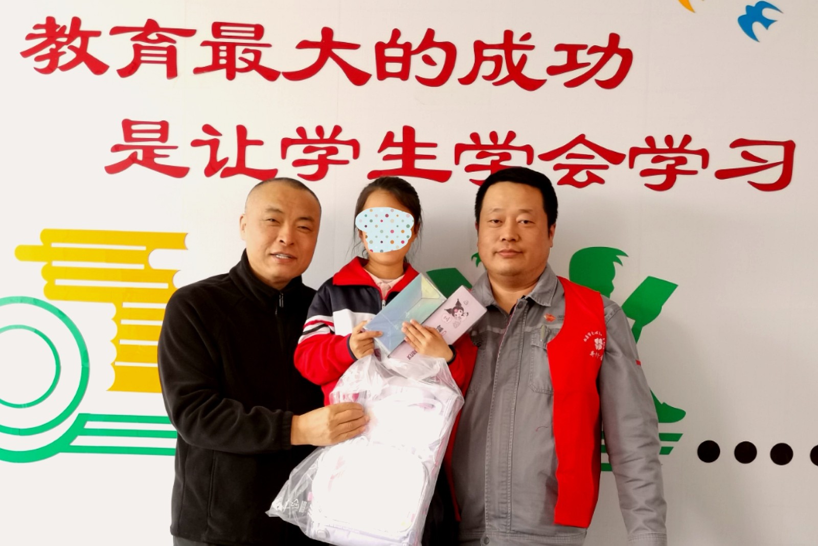 在結(jié)束慰問(wèn)后,王鵬飛第一時(shí)間就聯(lián)系了松原市愛(ài)心志愿者協(xié)會(huì)井方分會(huì),次日一同來(lái)到了小雨所在的所字鎮(zhèn)中心學(xué)校,在向校長(zhǎng)說(shuō)明了來(lái)意后,不一會(huì)兒,老師帶著20名學(xué)年不一的小學(xué)生走進(jìn)了學(xué)校會(huì)議室,而在這群孩子里,大家所熟悉的小雨也在其中,小雨同樣注意到大家的目光,略帶羞澀地向志愿者們打了一聲招呼。據(jù)介紹,學(xué)校里的大部分孩子的家庭都存在一定困難,在看到青年志愿者后,有的孩子也只是眨著小眼睛小心翼翼地注視著面前的“紅馬甲”,似是有些不知所措。副場(chǎng)長(zhǎng)竇洪巖注意到了孩子們的膽怯,趕忙蹲下身子輕聲安撫道:“小朋友們,看到我們身上的紅衣服了嗎,叔叔們和圣誕老人是一樣的,來(lái)實(shí)現(xiàn)你們的愿望了,”說(shuō)罷還從兜里掏出了事先準(zhǔn)備好的棒棒糖遞給了孩子們,在他的帶動(dòng)下,孩子們漸漸放下了警戒,紛紛開(kāi)心地與志愿者們打成一片。