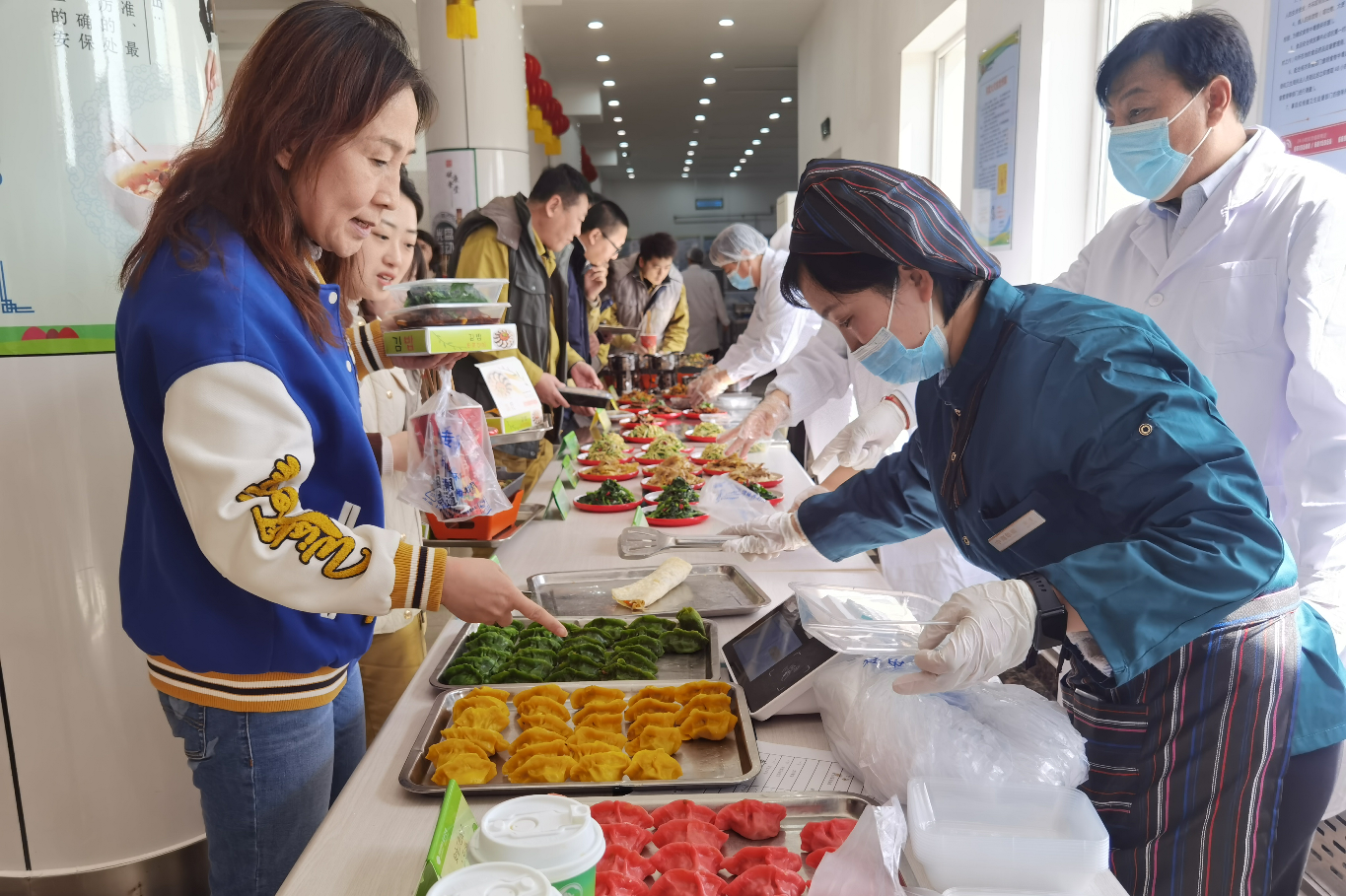 圖為美食節(jié)活動(dòng)現(xiàn)場(chǎng)員工正在挑選菜品