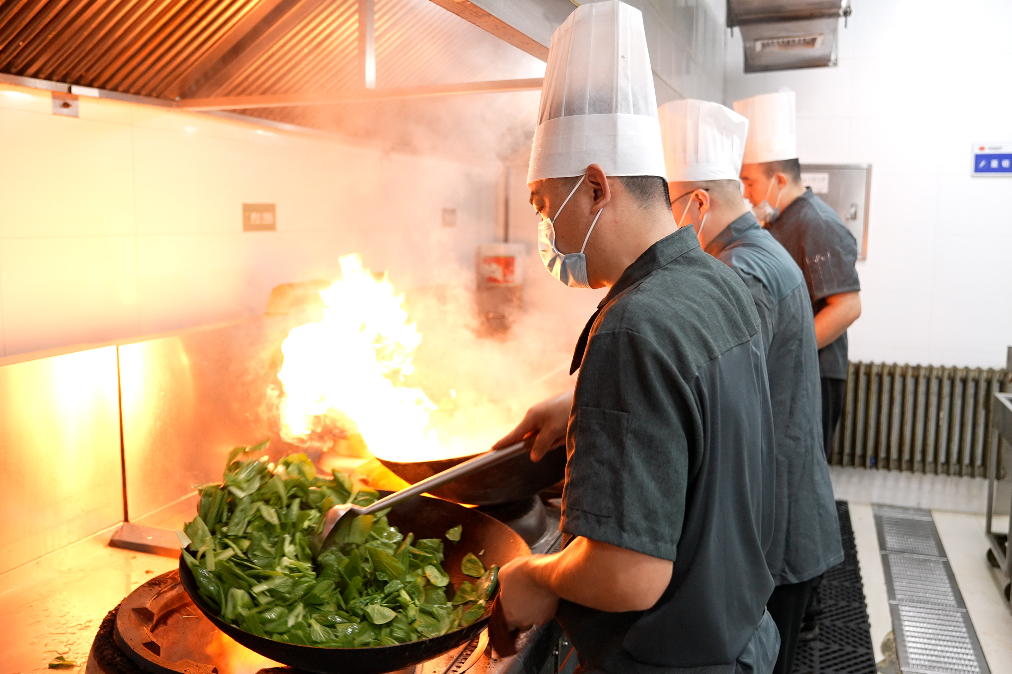 圖為廚師正在烹飪菜品