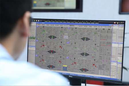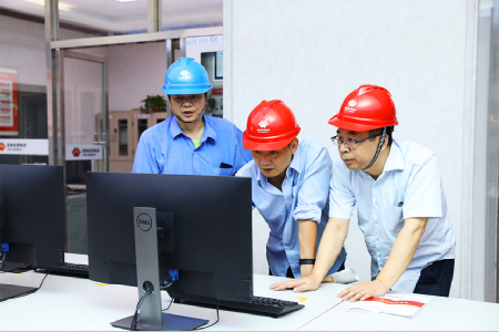 生產(chǎn)技術(shù)部節(jié)能可靠主管陳章、發(fā)電運行部主任助理兼鍋爐主管李永華、設(shè)備管理部鍋爐點檢長寧健在查找歷史曲線,分析設(shè)備運行缺陷