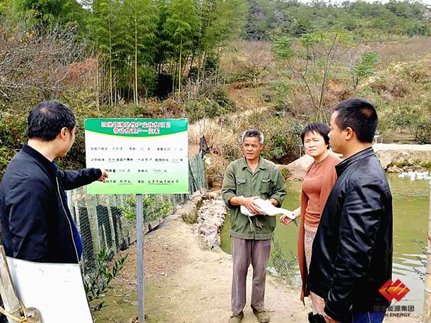 圖為該公司駐村干部檢查激勵性扶貧項目連城白鶩鴨養(yǎng)殖情況