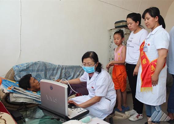 醫(yī)療組驅(qū)車3小時到達沙峁鎮(zhèn)。由于沙峁鎮(zhèn)村落分散,行動不便的老年人居多,為了方便村民就診,此次義診醫(yī)療組分了三個義診點。在醫(yī)療組到達第一個義診地點時,已經(jīng)有10多名貧困村民在等候就診。專家們在簡陋的屋子里安裝好B超機、心電圖機等設(shè)備,為前來就診的村民進行檢查。內(nèi)科、外科、骨科、五官科專家針對村民不同的身體問題進行了細致的檢查,并為村民免費發(fā)放了常用藥品。黨員青年志愿者在發(fā)放藥品時又為他們做了耐心的健康飲食和用藥指導(dǎo)。三個多小時里,共有30多名村民接受了健康服務(wù)。