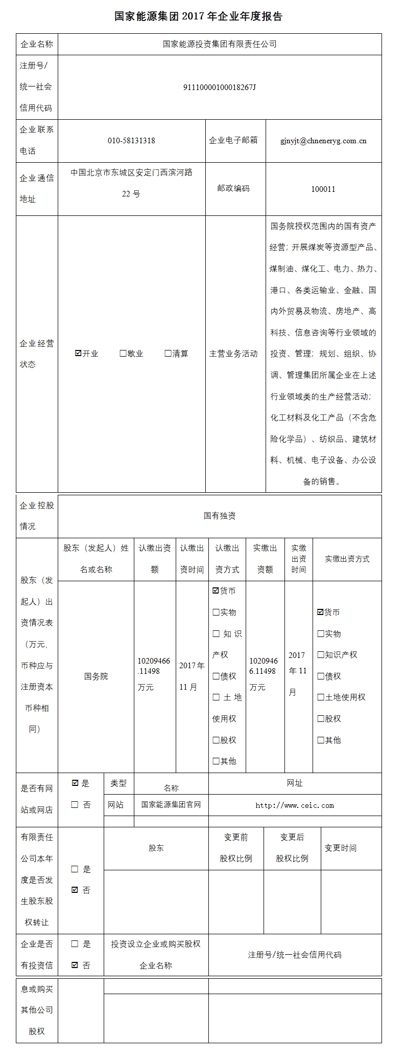 國家能源投資集團有限責任公司(簡稱國家能源集團)于2017年11月28日正式掛牌成立,是經(jīng)黨中央、國務院批準,由中國國電集團公司和神華集團有限責任公司聯(lián)合重組而成的中央骨干能源企業(yè),是集央企聯(lián)合重組、國有資本投資公司改革、創(chuàng)建世界一流示范企業(yè)、國有企業(yè)公司治理示范企業(yè)“四個試點”于一身的中央企業(yè),擁有煤炭、電力、運輸、化工等全產業(yè)鏈業(yè)務,產業(yè)分布在全國31個省區(qū)市以及美國、加拿大等10多個國家和地區(qū),是全球規(guī)模最大的煤炭生產公司、火力發(fā)電公司、風力發(fā)電公司和煤制油煤化工公司。2024年在《財富》世界500強排名第84位。