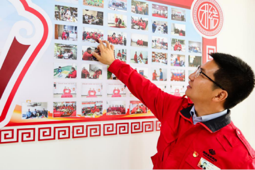 “我們每位干部都和至少一名少數(shù)民族員工結(jié)親,像親戚一樣來(lái)往走動(dòng),逢年過(guò)節(jié)探望慰問(wèn),生活上家庭中有什么困難也隨時(shí)搭把手。你們看,這是我的結(jié)親對(duì)象馬韶山,這個(gè)回族小伙子現(xiàn)在于田駐村,經(jīng)?;夭涣思?。這是我去他家看望老人孩子時(shí)拍的照片。”在“民族團(tuán)結(jié)一家親”交流廣場(chǎng),夏祖國(guó)如數(shù)家珍地介紹著照片墻上每一張照片背后的故事。
