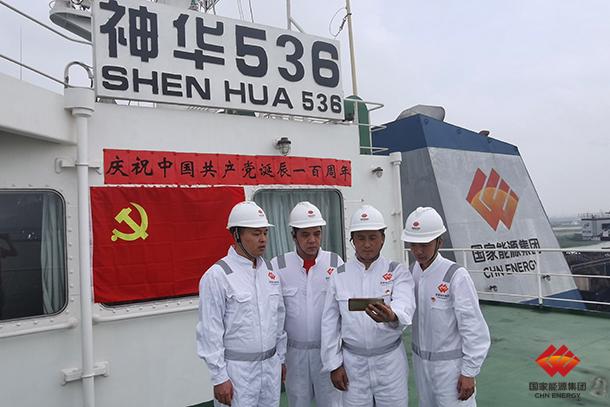 航運(yùn)公司神華536輪在靖江揚(yáng)子江碼頭靠泊收看慶祝中國(guó)共產(chǎn)黨成立100周年大會(huì)盛況