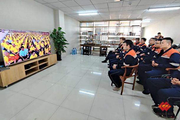圖為黃驊港務(wù)生產(chǎn)一部在會(huì)議室收看慶祝中國(guó)共產(chǎn)黨成立100周年大會(huì)盛況