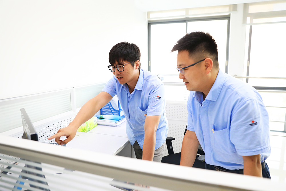 圖為廣西國(guó)能能源發(fā)展有限公司規(guī)劃建設(shè)部主管熊浩、廣西國(guó)能能源發(fā)展有限公司貴港分公司副經(jīng)理宋晨光在風(fēng)電場(chǎng)智慧監(jiān)控平臺(tái)上查看風(fēng)機(jī)運(yùn)行數(shù)據(jù)。